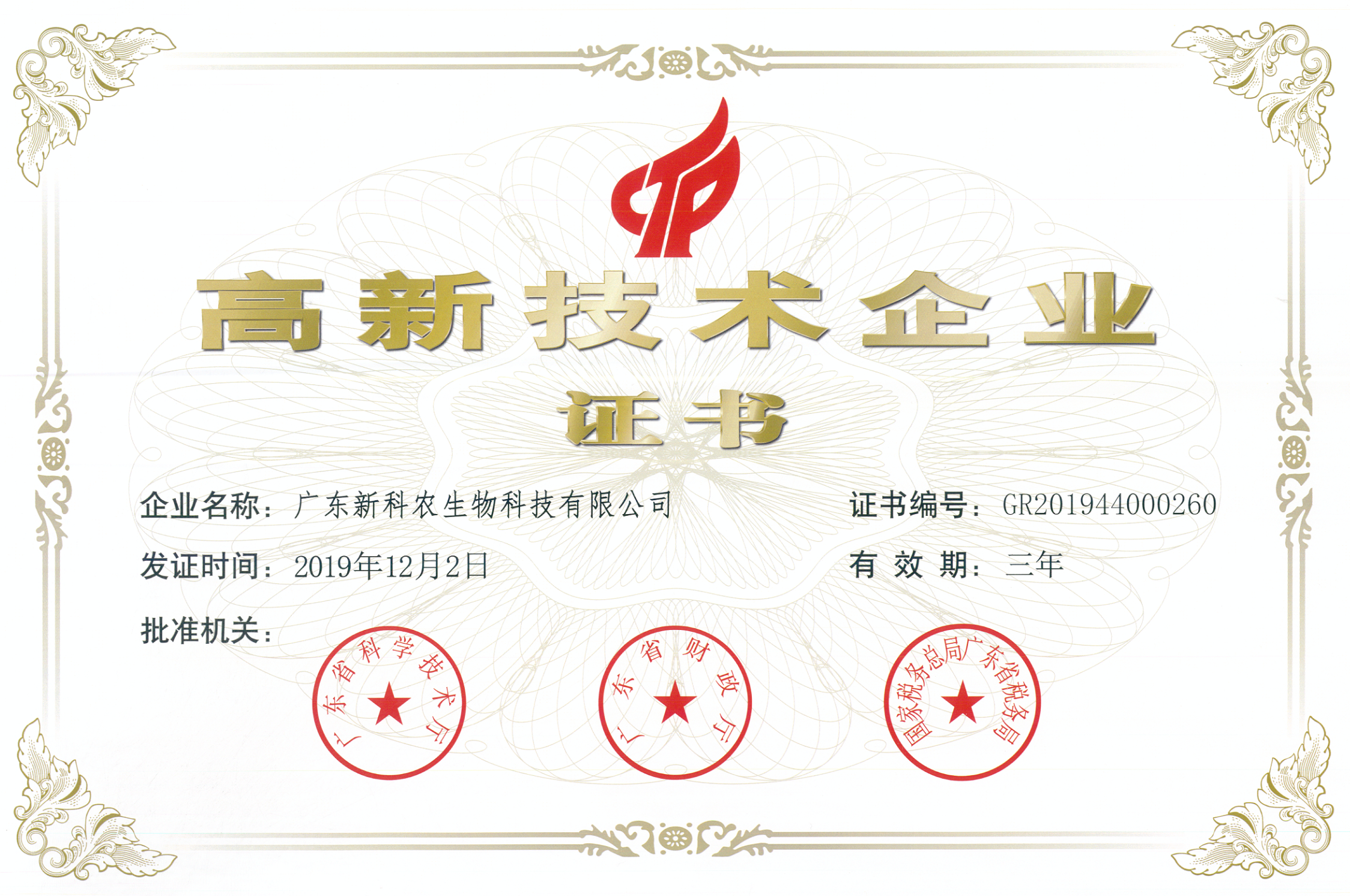 ◆ 高新技术企业证书