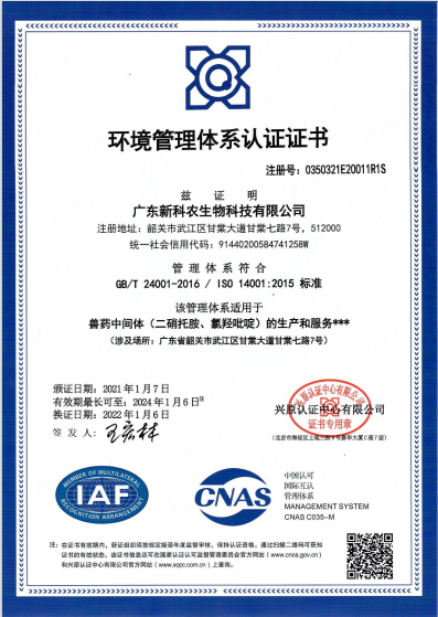 ◆ ISO14001环境管理体系认证证书